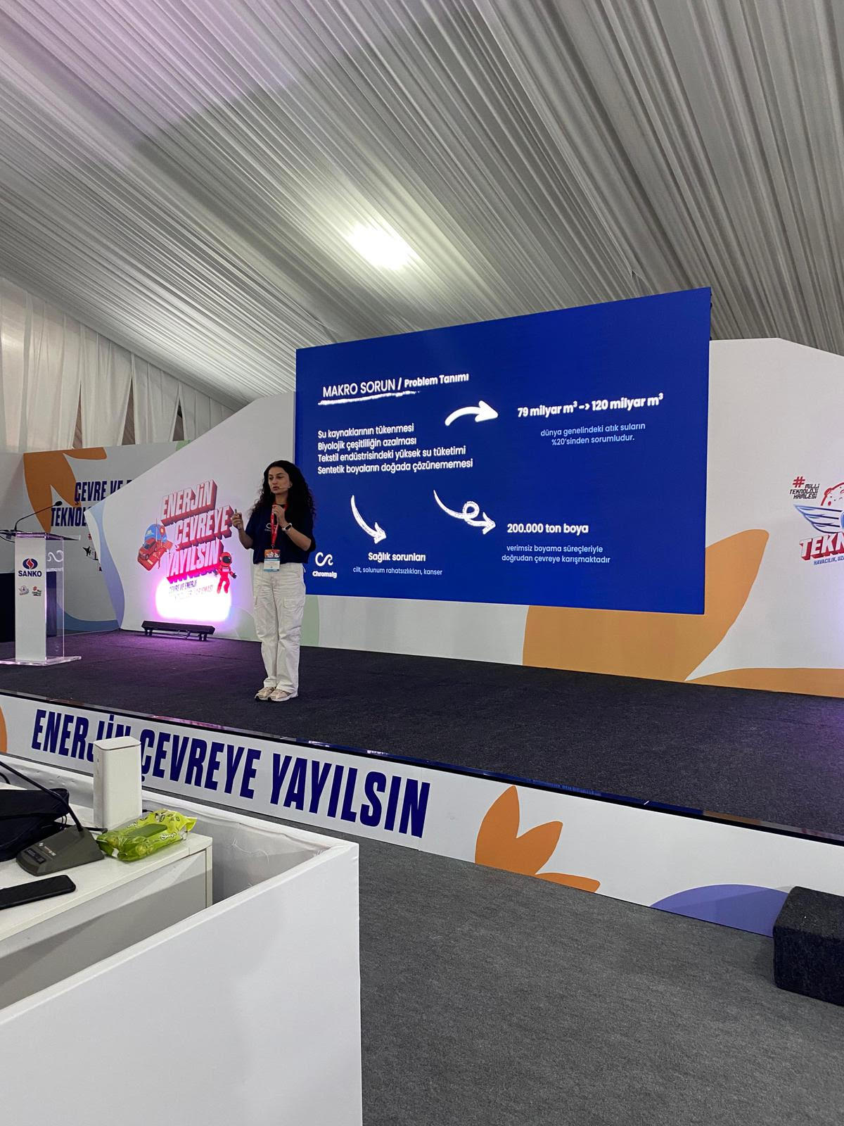 Aslıhan Yesir’in geliştirdiği Chromalg isimli proje, tekstil sektöründen kaynaklanan atık suları mikroalgler aracılığıyla temiz suya dönüştürürken, aynı zamanda elde edilen mikroalg biyokütlesinden doğal boya üretimi sağlıyor. Bu sayede hem çevreye temiz su kazandırılıyor hem de sektöre katma değerli ve sürdürülebilir bir ürün sunuluyor.