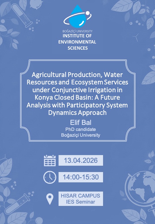 We cordially invite you to our seminar “Agricultural Production, Water Resources and Ecosystem Services under Conjunctive Irrigation in Konya Closed Basin: A Future Analysis with Participatory System Dynamics Approachto be held by Elif Bal, Boğaziçi University, Institute of Environmental Sciences