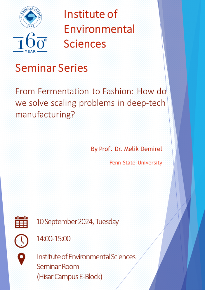 We cordially invite you to our seminar “From Fermentation to Fashion: How do we solve scaling problems in deep-tech manufacturing?”, to be held by Prof. Dr Melik Demirel.