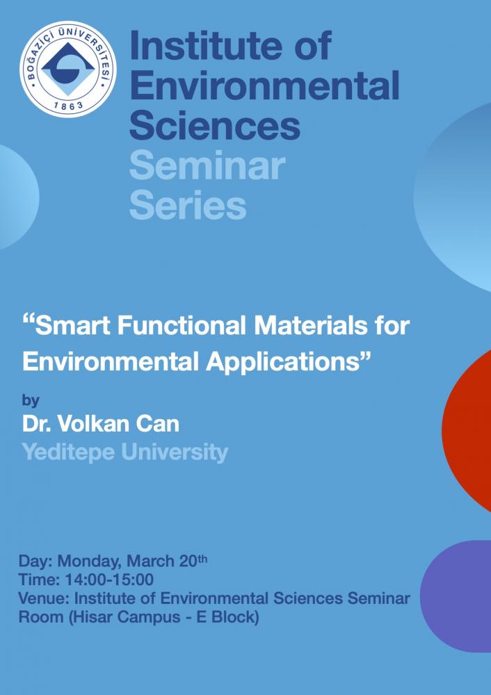 We cordially invite you to our seminar “Smart Functional Materials for Environmental Applications” by Dr. Volkan Can, Yeditepe University.